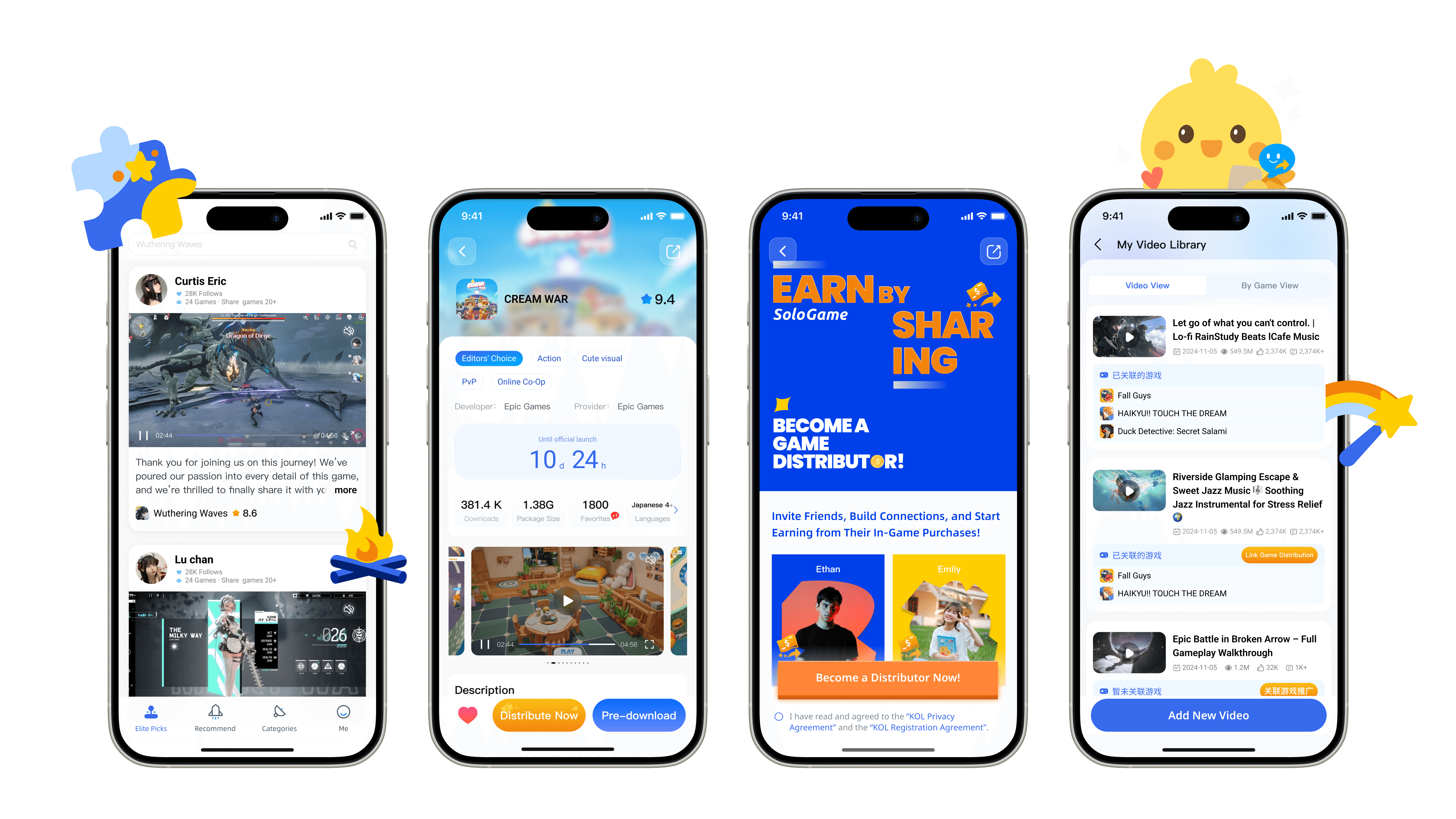 For the game distribution and revenue settlement scenario, blue conveys stability and reliability, while orange highlights key actions and revenue elements. The overall visual combines tech sophistication with energy: icons adopt a 3D metallic style, and illustrations use simplified digital forms with vibrant colors, creating a relaxed, international atmosphere that balances professionalism with approachability.